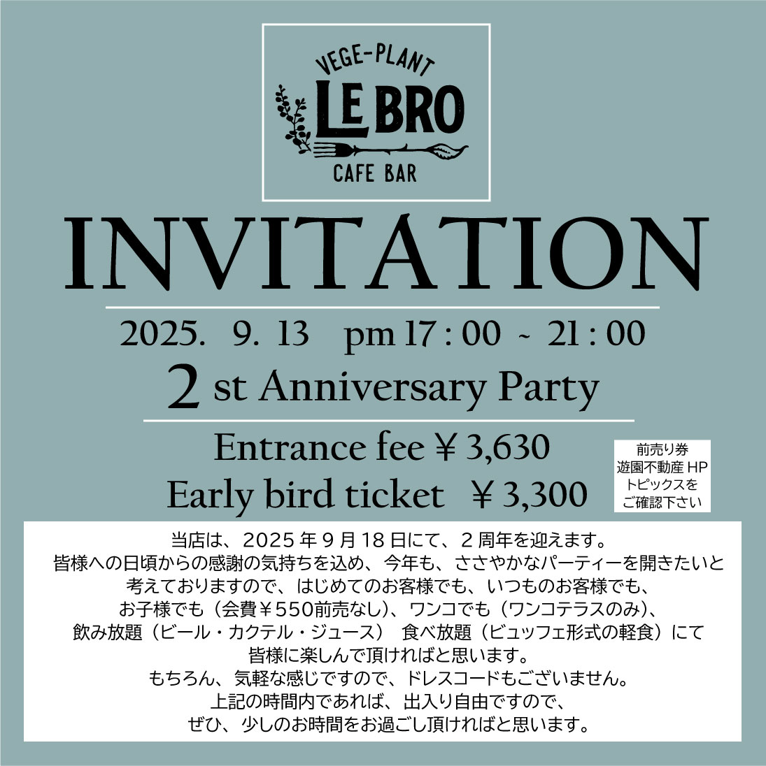 2周年インビテーション | 【公式】遊園不動産 川崎市・多摩区・向ヶ丘遊園の不動産会社